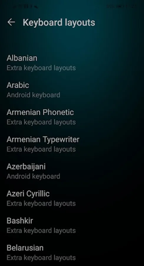 Adds a few choices to the list of layouts to use when a physical keyboard is connected e.g. via OTG or Bluetooth.