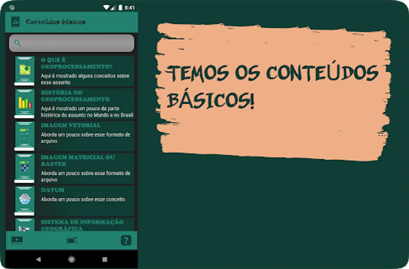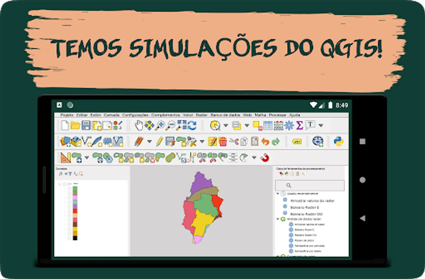 CaatGis is an application that has the general objective: to teach geoprocessing in a more playful and didactic way.
