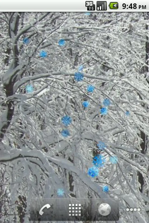A nice looking live wallpaper with snow falling. Touch the screen to add more snowflakes...
