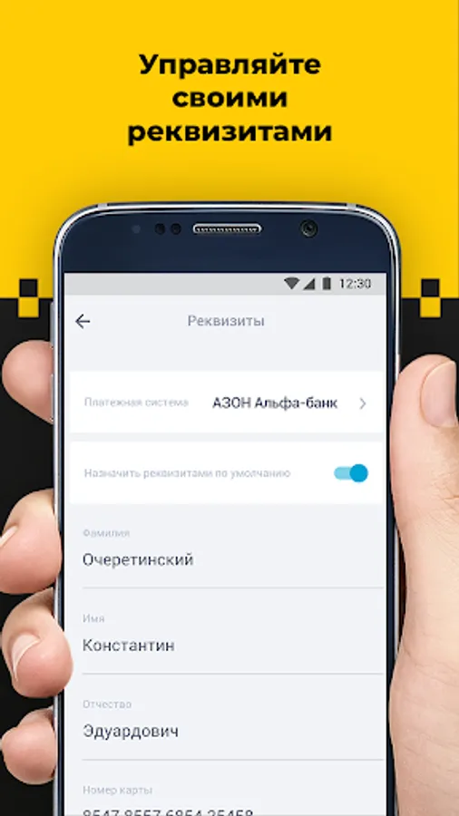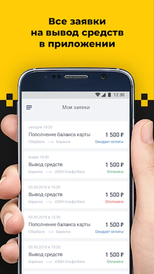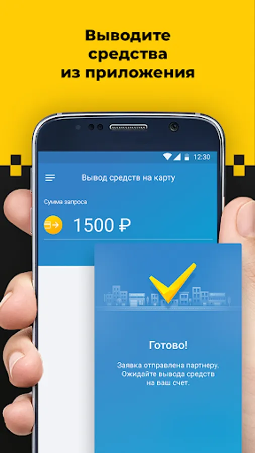 For quick withdrawals of funds from a taximeter. For taxi drivers and couriers