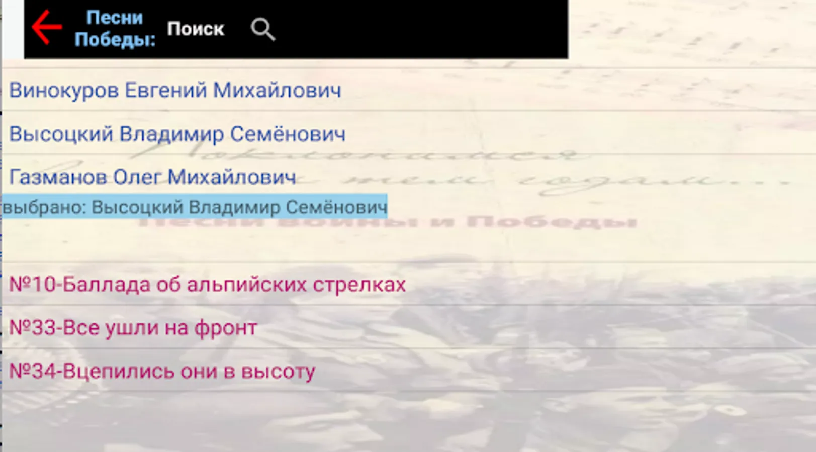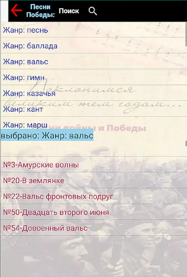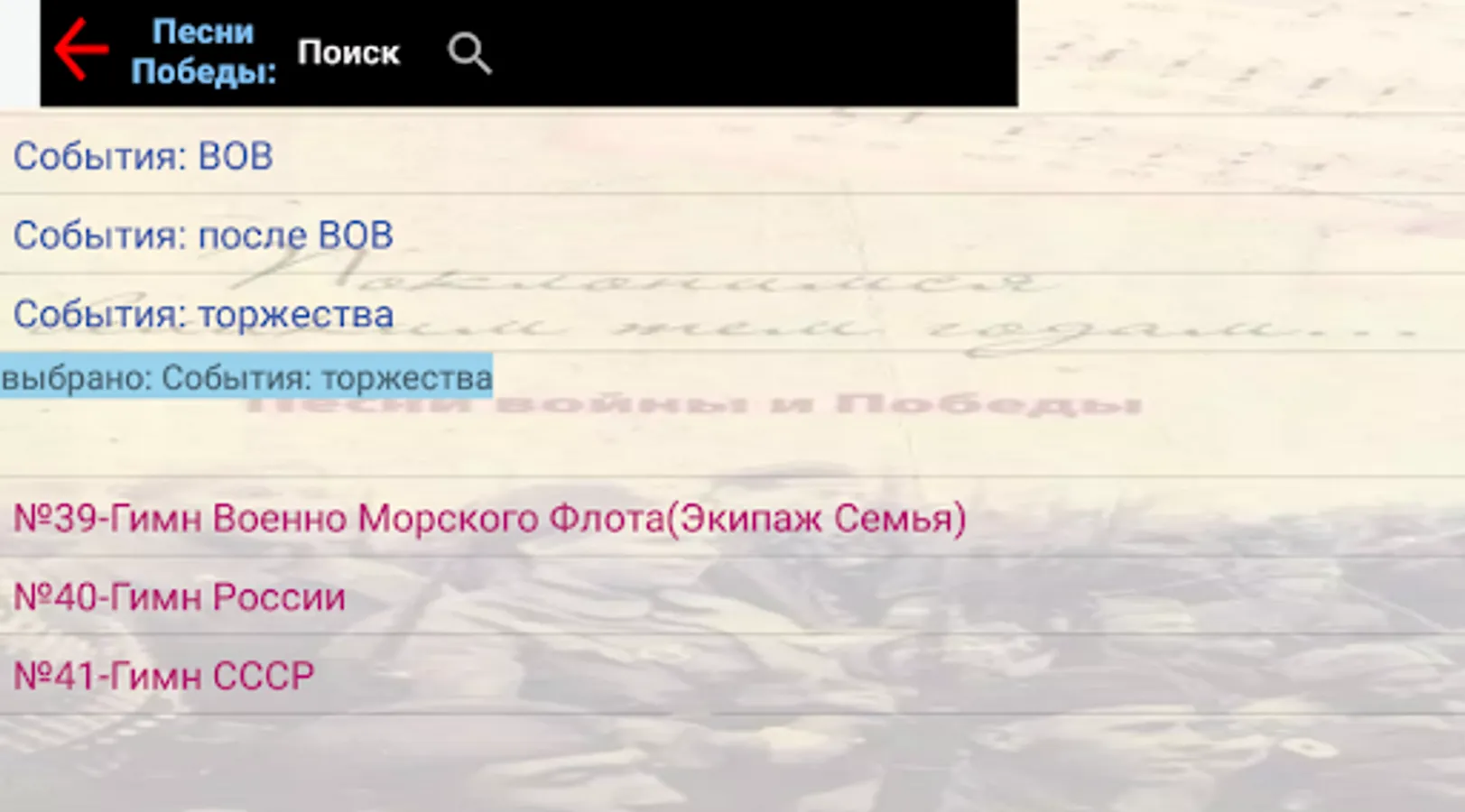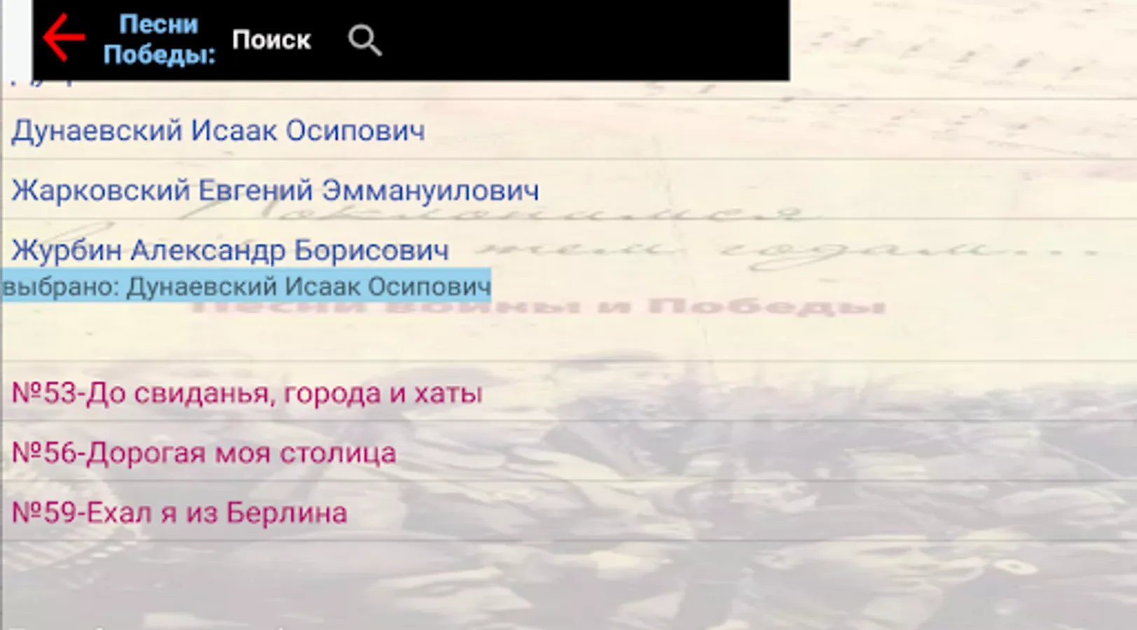 ⦁ classification with different types of search (by poets, composers, works, genres, events).