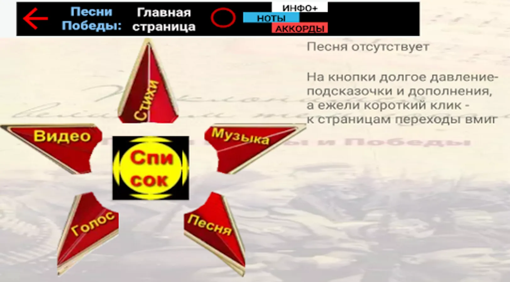 A small pocket guide-encyclopedia with an original interface: buttons in the form of a red star and a Russian tricolor.