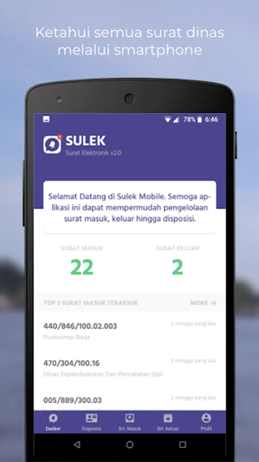 SULEK (Electronic Mail) is a mailing application that enables easy management of incoming mail, outgoing mail, disposition, mail archives search to reporting environment DISKOMINFO Samarinda.