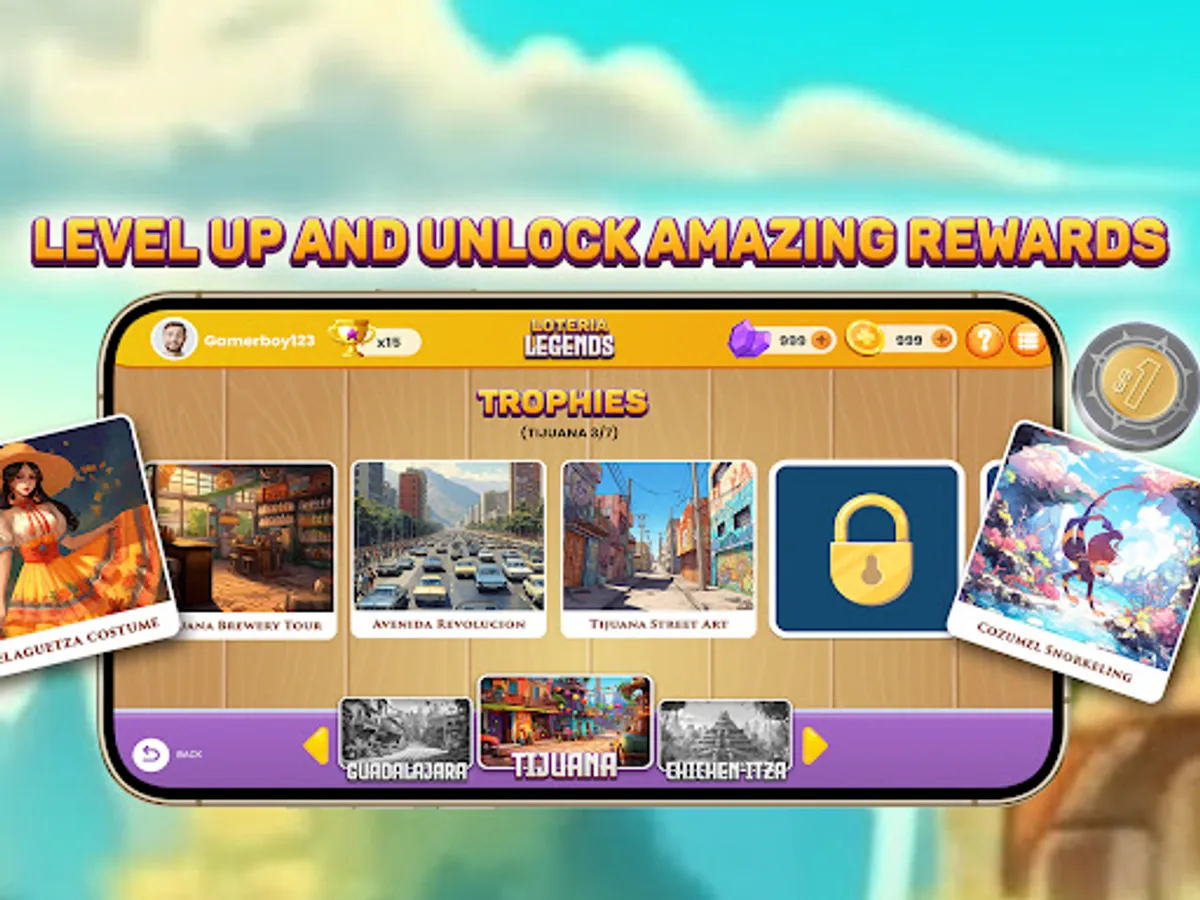In Loteria Legends, each win is an avenue to more than just triumph. Earn collectibles, unique to each level, and proudly display them in your virtual trophy room. As you accrue experience, ascend to new levels, unveiling increasingly competitive gameplay, stunning boards, and lively avatars. The deeper you delve into Loteria Legends, the more enthralling the gameplay and bountiful the rewards!