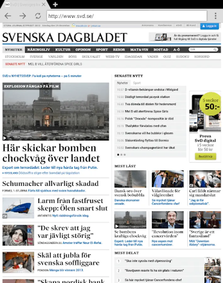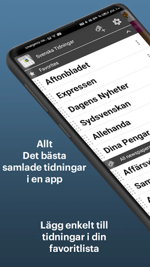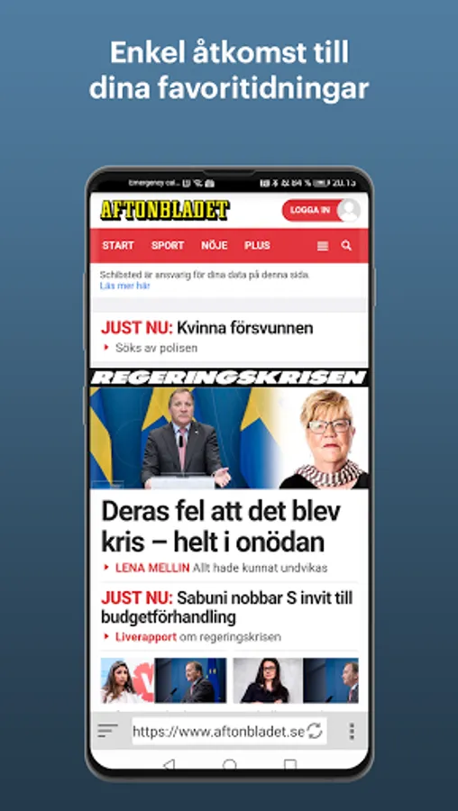 You can find news from; Business World, Aftonbladet, Johannesburg newspaper, Allehanda, Arbetarbladet, barometer, Blekinge Lans newspaper Borås Newspaper, Computer Sweden, Day, Dagens Industri, Dagens Media, Dagens Nyheter, Dalademokraten, Eskilstuna Courier, Express, Folkbladet, Gävle Dagblad, Helsingborgs Dagblad, IDG, Jnytt, Kristianstadsbladet, Lerum Newspaper, Local, Metro, Mobil.se, Nerikes Allehanda, Norran, New Wermlands-magazine with suburbs Newspaper, Sundsvall Newspaper, Swedish newspaper Svenska Dagbladet, E24, SVT, Sydsvenska, Trelleborg sorts, UNT