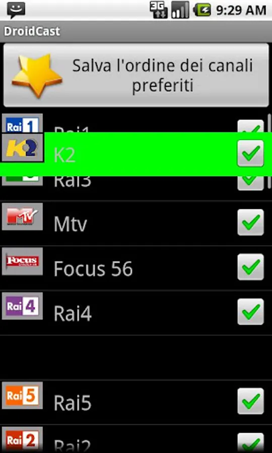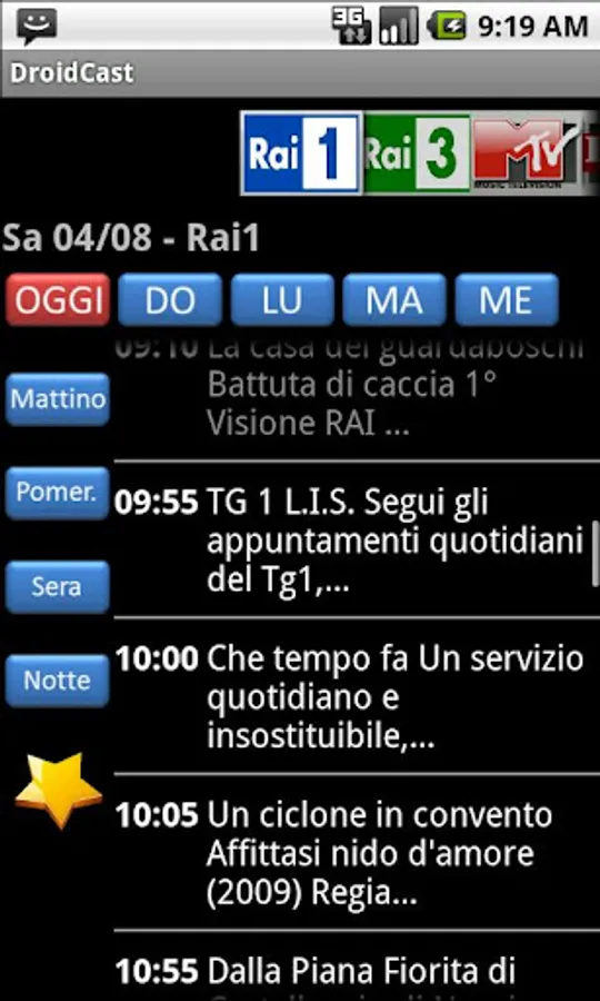 Droidcast allows you to have information on the following schedules of digital channels d 'Italy: