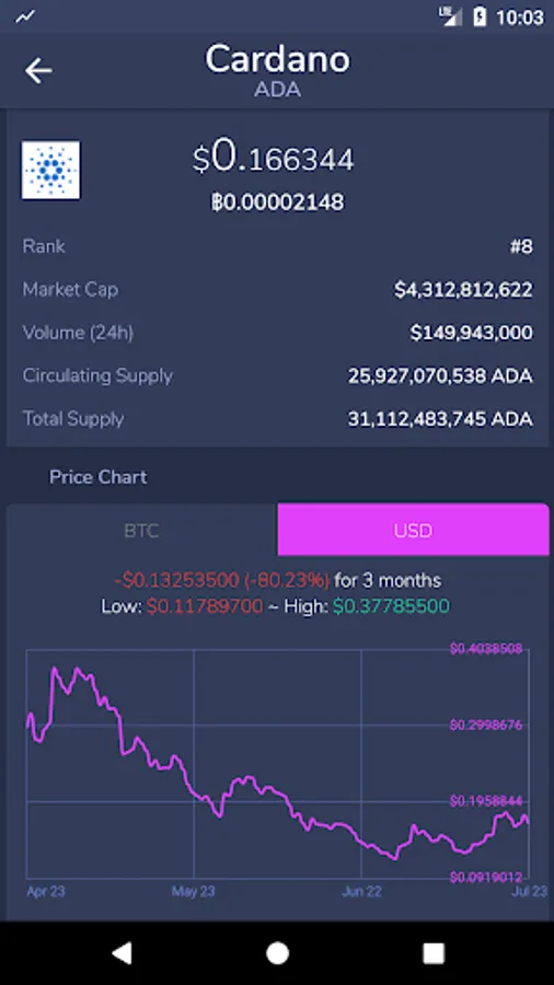 Display overview information or dig into historic coin price and market cap data.