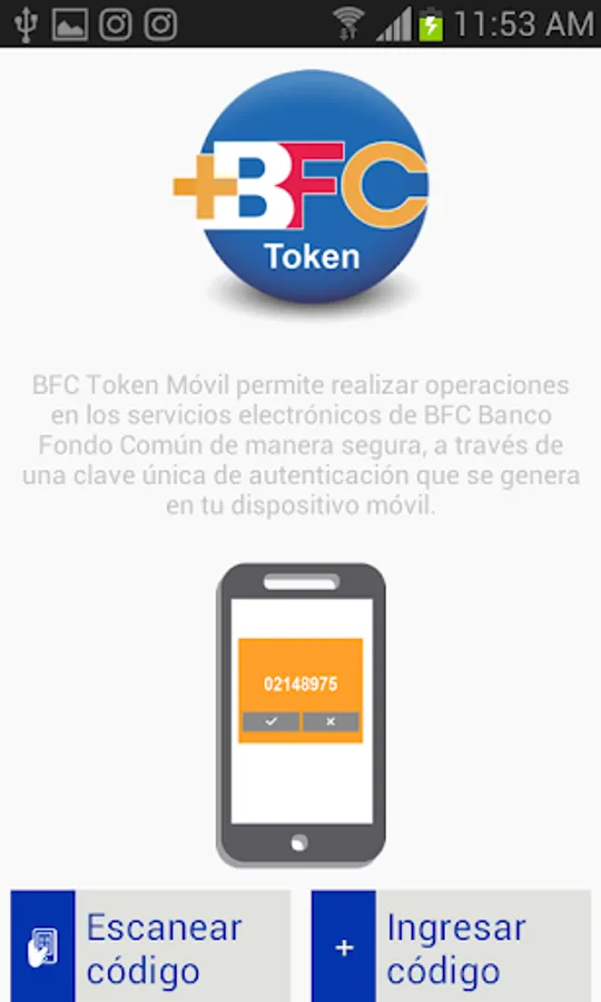 The BFC Token Mobile application is a security tool that allows you to perform operations through electronic banking services safely through a single authentication code generated on your mobile device. With this tool BFC Bank Common Fund, it gives you an experience of mobility and security that prevents unknown capture your user credentials and be used for fraudulent purposes.