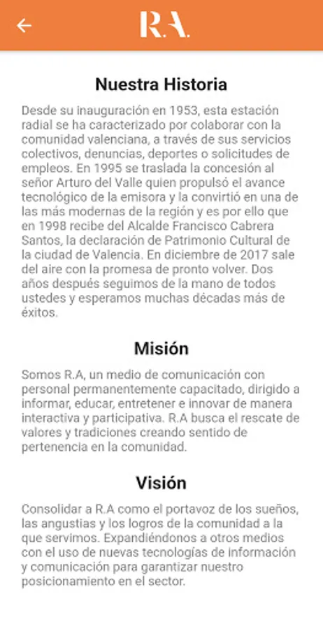 Consolidate R.A as the spokesperson for the dreams, heartaches and achievements of the community we serve. Expanding to other media with the use of new information and communication technologies to guarantee our position in the sector.