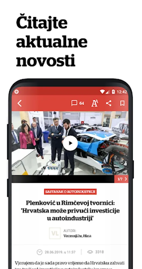 Službena aplikacija news portala vecernji.hr i dnevnih novina Večernji list prilagođena za mobilne i tablet Android uređaje. Najpopularnija hrvatska news aplikacija.