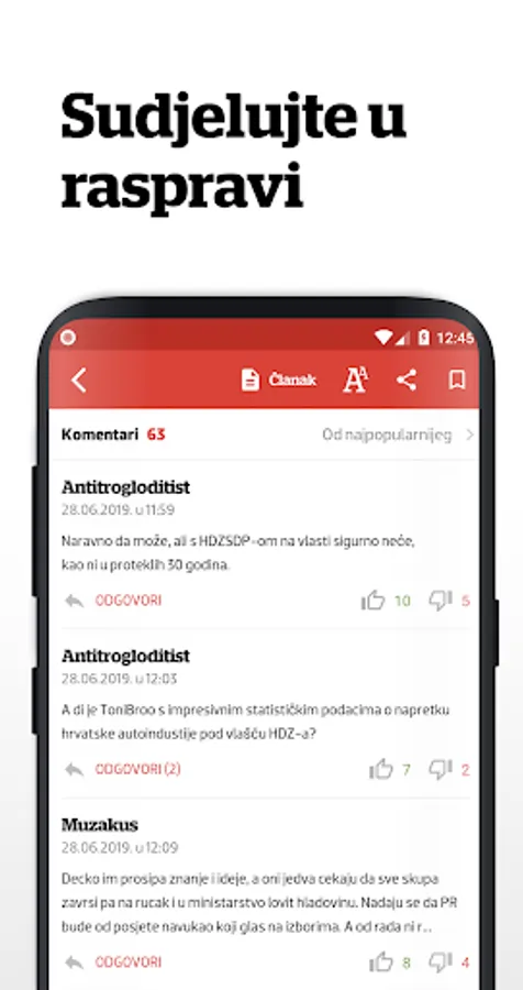 Kroz aplikaciju možete pratiti sve rubrike sadržaja sa portala vecernji.hr, te dodatno filtrirajte prema autoru, podrubrikama ili ključnoj riječi. Sudjelujte u raspravi tako da se prijavite sa korisničkim računom sa portala vecernji.hr
