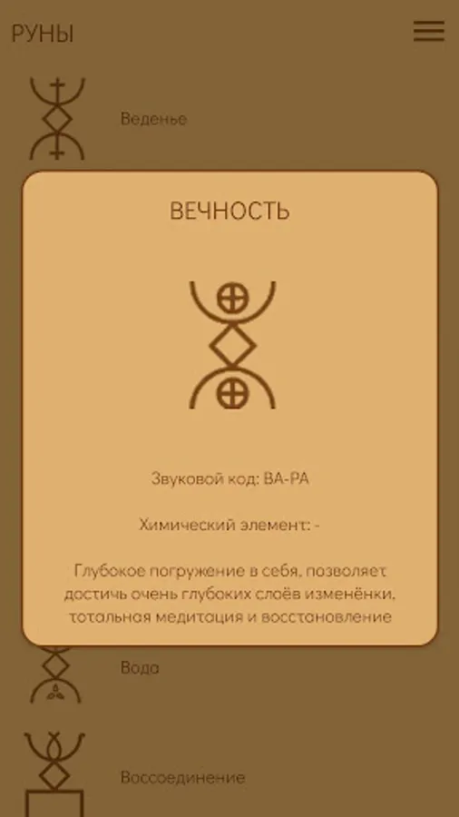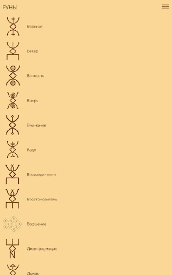 The extended edition of the application is designed for 55 Runes. The application allows you to work out and remember the Runes and their meanings, including the chemical element of the Runes (not all Runes have it), a sound code.