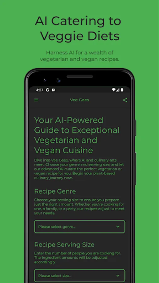 With Vee Gees, you aren't merely using a recipe app - you're embarking on a journey through a vibrant world of vegetarian and vegan cuisine. The beauty of food lies in its variety, and our app is your passport to explore that diversity.