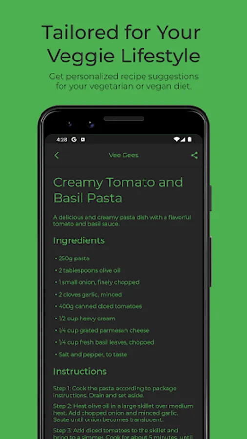 5. Save Your Favorites - Love a recipe? Save it in the app for easy access whenever you need it. With Vee Gees, your favorite meals are just a tap away.