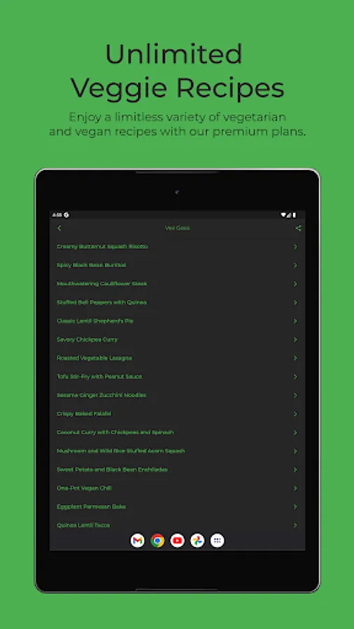 1. Unlimited Recipe Generation - With our premium plans ($8.99/month or $2.99/week), enjoy the freedom to generate unlimited vegetarian and vegan recipes, transforming the daily chore of meal planning into an enjoyable and creative experience.