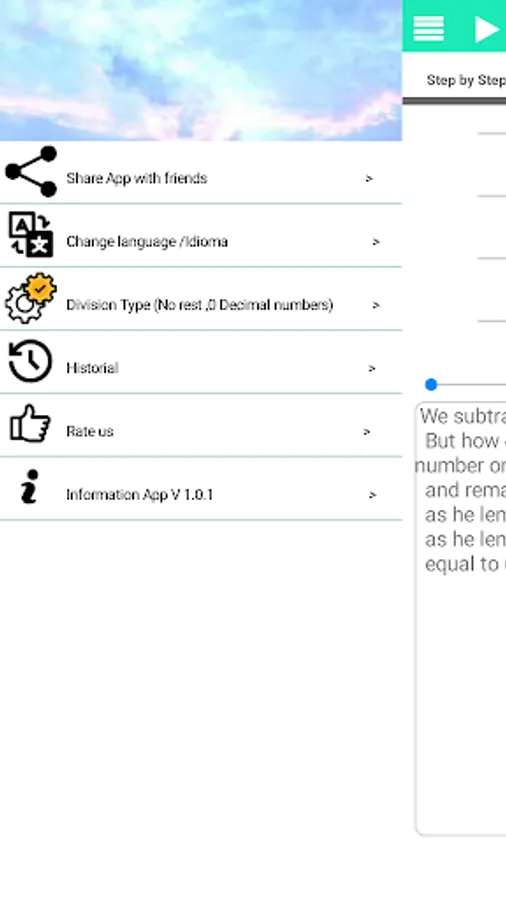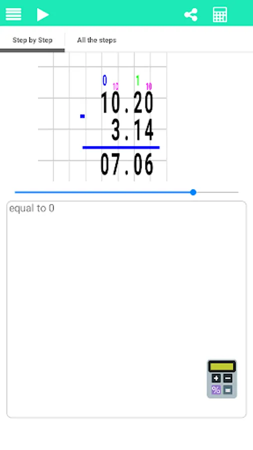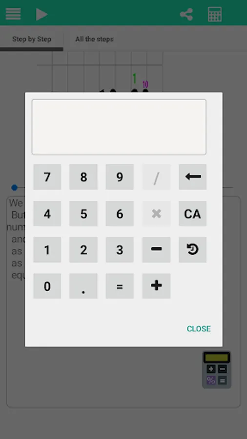 With this application make math homework easier and more interesting. The application supports elementary math operations, Long Division, Long Multiplication, Addition and Subtraction. This program is very simple. Write an example from a math textbook and you will immediately receive the solution. The application supports different ways of column division. Such as division with remainder and without remainder.