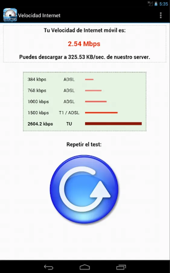 3) Return the results in megabits per second and kbytes, contrasting with a graphic below that compares different commercial speeds achieved against your Android device.