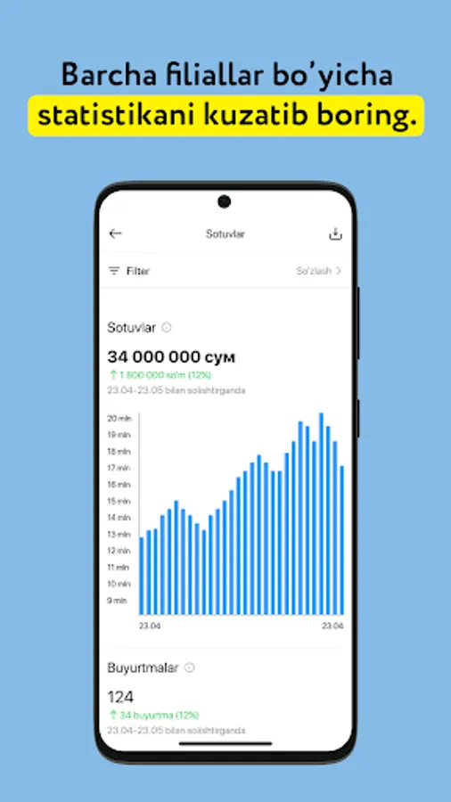 📊 Barcha filiallar bo'yicha statistikani kuzatib boring;