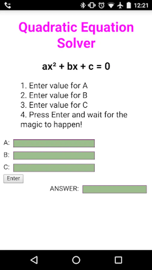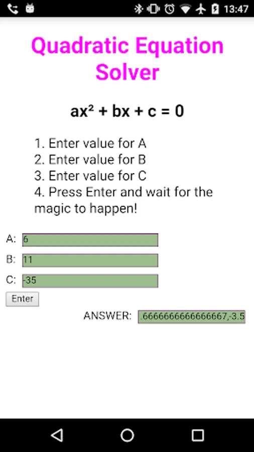 Quadratic Solver Screenshots