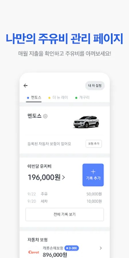 You can enter and manage insurance information. When you need to call your insurance company due to an accident or breakdown, just one click is enough. You can also receive insurance renewal notifications one month before expiration.