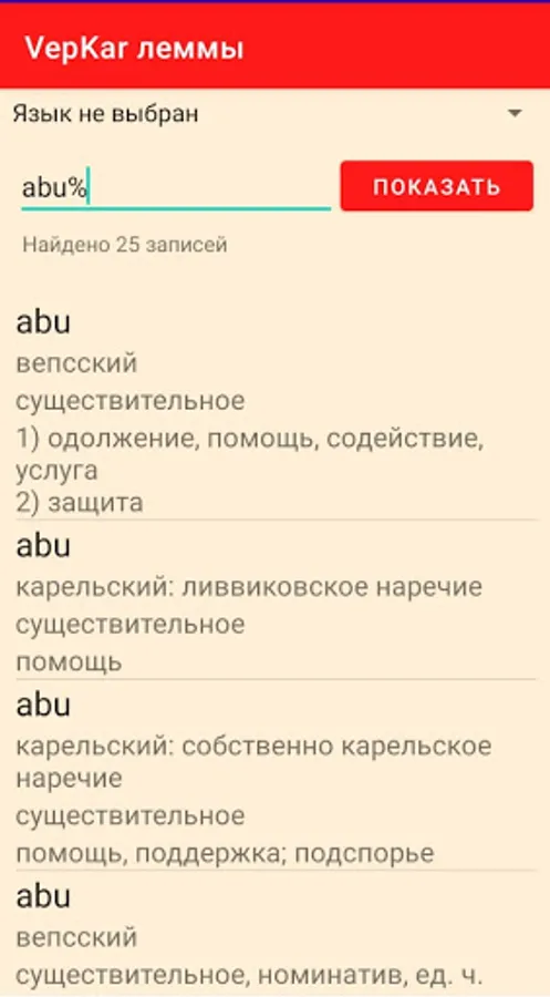Šanahelmi is a dictionary of the Vepsian and Karelian languages with translation into Russian.