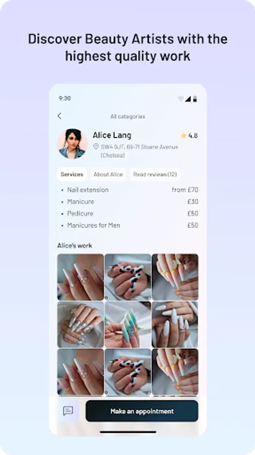 Discover and book beauty services while professional beauty artists can showcase their work and connect with new clients. The ultimate platform for beauty enthusiasts and artists to come together.