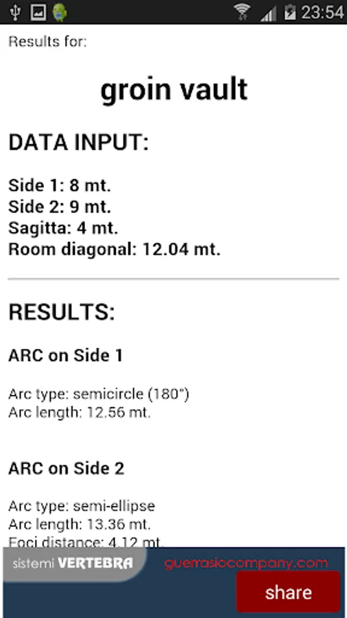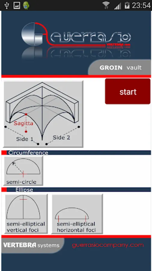It calculates th geometry of several vaults shape as barrel, groin, ribbed, cloister vault and dome, simply using as data input the sides, height and/or radius of room.