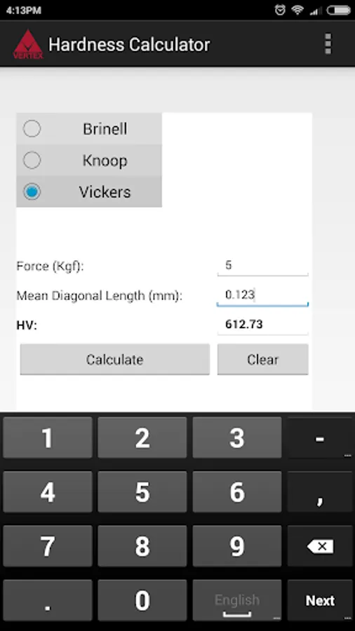 No more charts / tables required for Hardness Measurement, just download the app and calculate Hardness in Brinell, Vickers & Knoop scales, user have to select appropriate Hardness scale and enter the basic information,