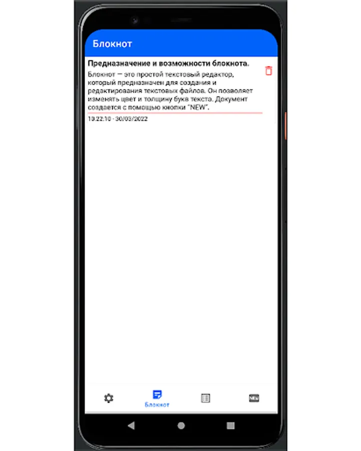 Notepad is a simple text editor that is designed to create and edit text files. It allows you to change the color and thickness of the letters of the text. The document is created using the “NEW” button.