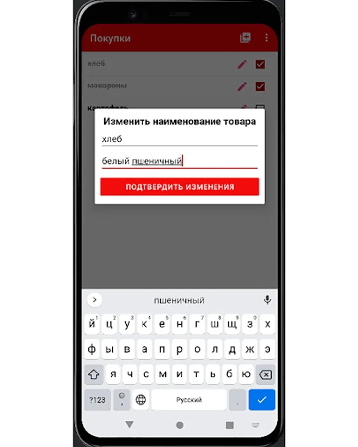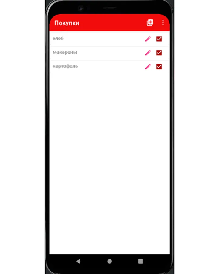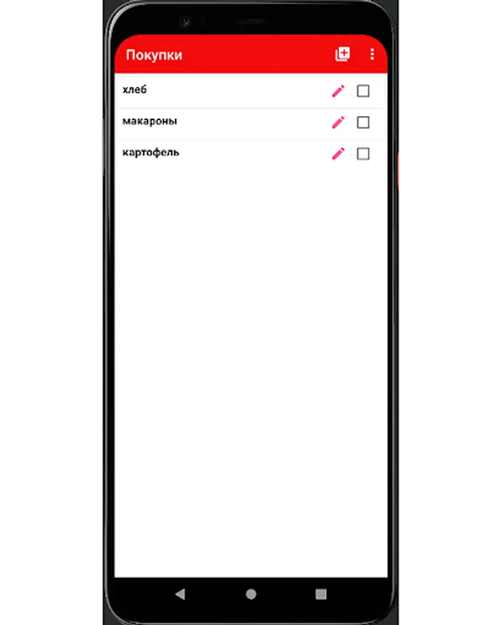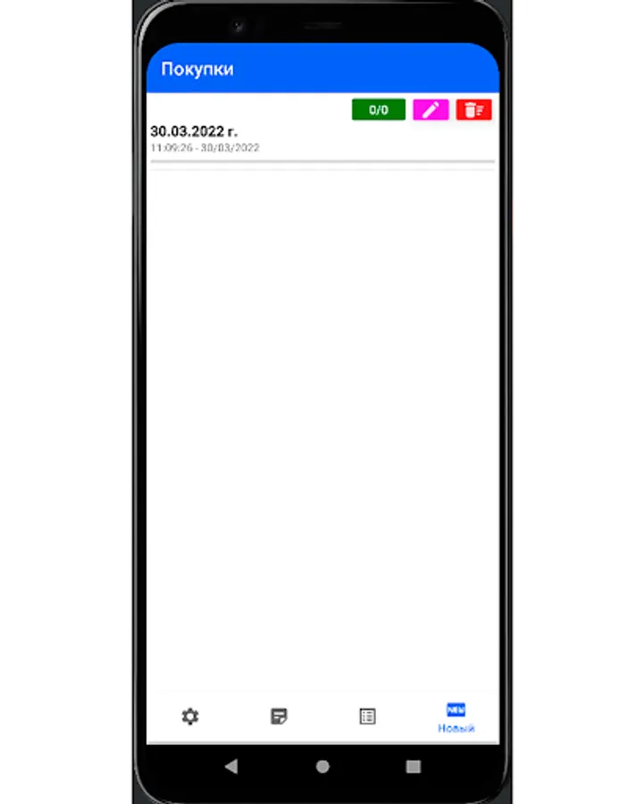 Created using the “NEW” button. In the process of writing lists, a library is formed from those names of goods that are already included in the list. The library provides an opportunity not to type again, but to choose a name from the list that appears when typing the first letters. It is possible to edit the names and add additional information about the product. Purchased items are marked, which is displayed on the screen.