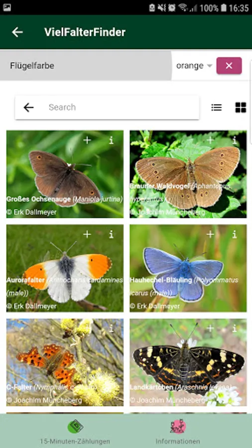 The VielFalterGarten app enables 15-minute counts of butterflies. Helpful functions such as a butterfly database support the identification of the species and also convey exciting knowledge about the importance and ecology of butterflies. The data is made accessible under an open license and scientifically evaluated as part of the Citizen Science project VielFalterGarten. Each count contributes to research on the protection of butterflies and biodiversity. Become part of VielFalterGarten and get involved in the protection of butterflies! Further information on the project is available at www.vielfaltergarten.de