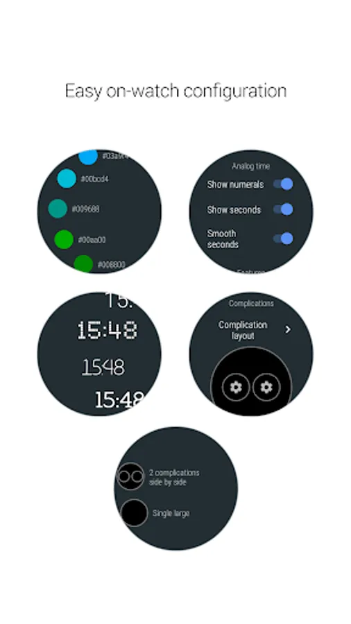 ● Configurable complications (1, 2 or 4), also supports background complications such a Muzei