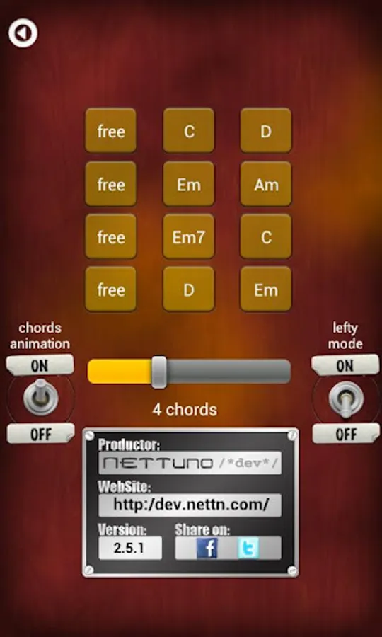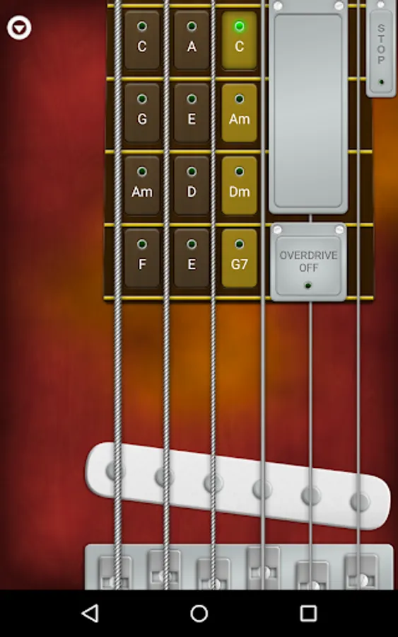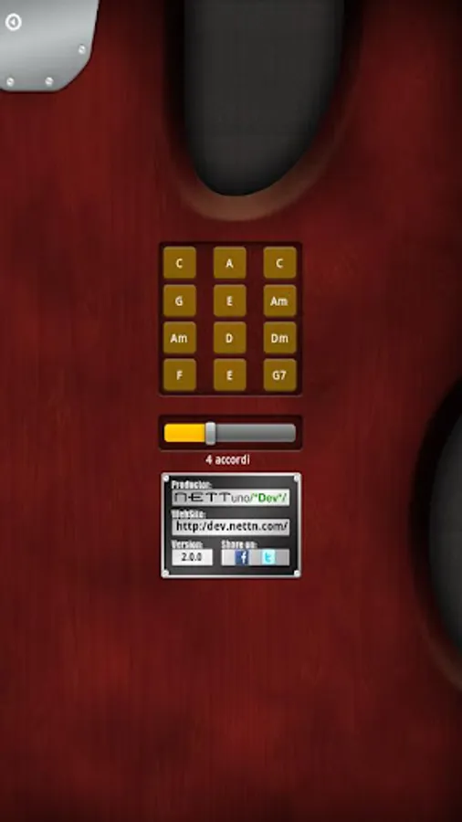 Choose an on-line chords sequence, or set it by yourself, save it on your device and share it with the world! Every time you touch the big chords-holder button, you switch sequentially between the chords.
