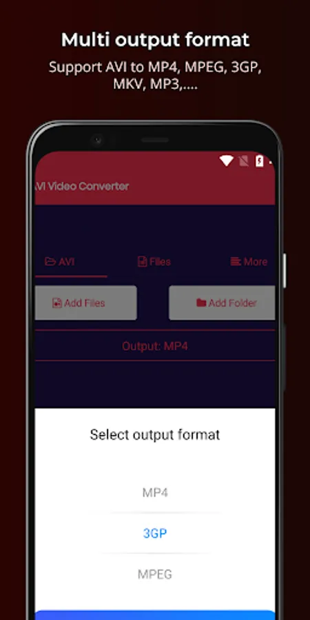- Support multi output format : MP4, 3GP, MPEG, MKV, MP3, ...