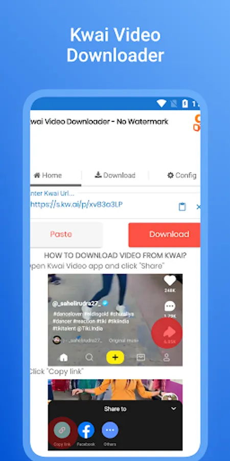 - Step 1: Open Kwai app and click on the "Copy Link" of the video you want to download.