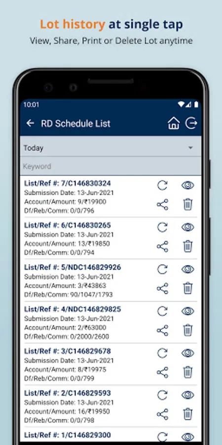 ✓ Auto Submit repetitive Lots every month: You need not to prepare and submit RD Lots every month. You can submit repetitive Lots automatically and new reference number will be generated with Lot PDF.