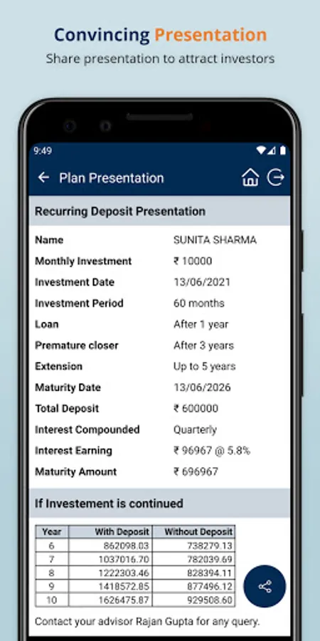 ✓ Plan Presentation: Prepare plan presentation and share it with client with detailed calculation and benefit details. This will attract more investment and helps DOP Agents grow business.