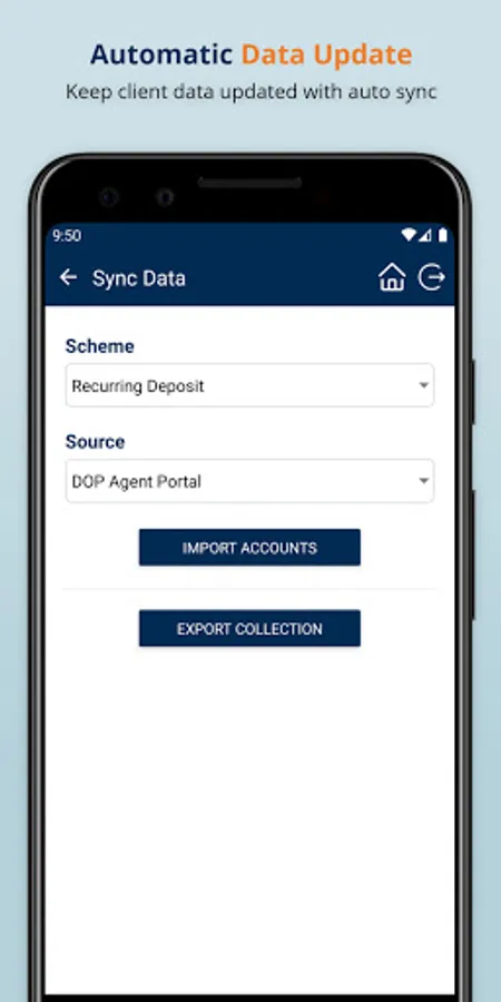 ✓ Sync/Update Account Data: Account details can be downloaded from DOP Agent Portal. Also, account details for all postal schemes (RD and SAS) can be downloaded from Post Office Agent Software.