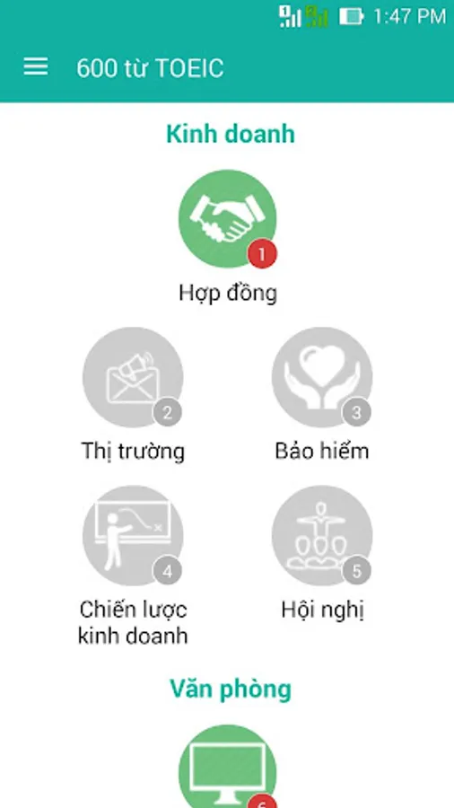 - The main functions of the app TOEIC Vocabulary Learning:
