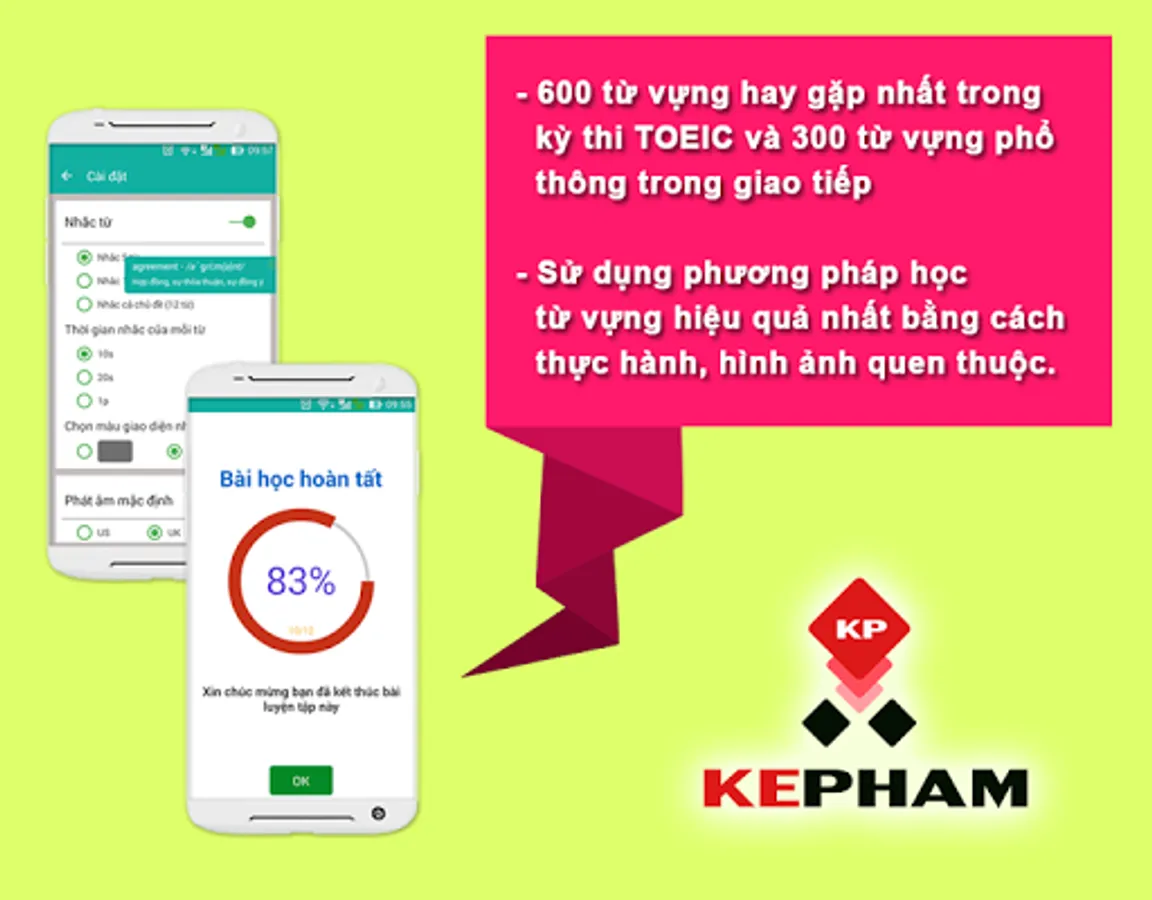 + Each lesson will include multiple-choice section vivid understandable for you to remember the words themselves