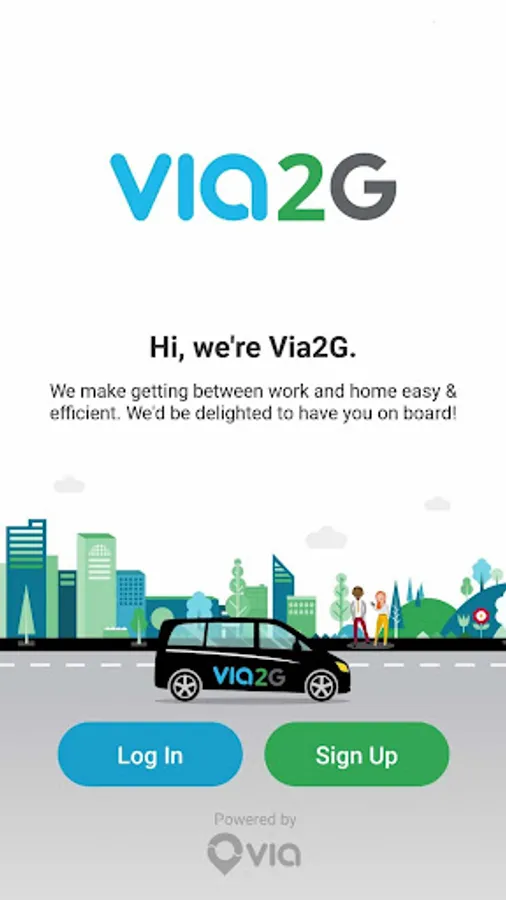 Via2G is a ride-sharing app powered by Via. Via2G is a convenient and easy way to commute between work and home. This intelligent service allows passengers to share their journey with others. Book a ride and Via’s powerful algorithm matches you with a vehicle that will pick you up at a convenient spot nearby.