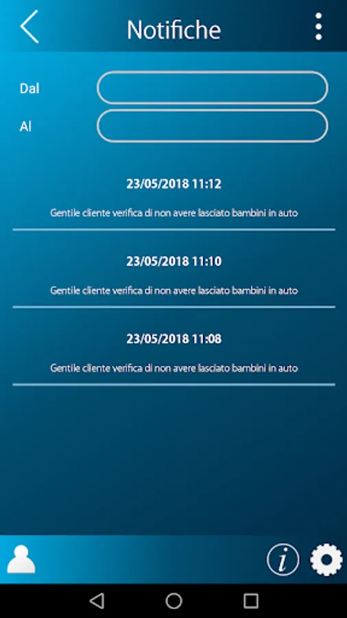 Children on Board: a special notification to alert the user to verify the presence of children in the car.