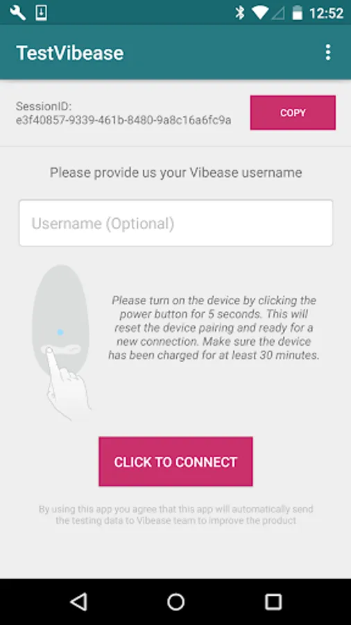This is a testing app. Download this only when you have issues connecting to Vibease device.