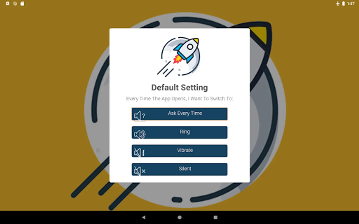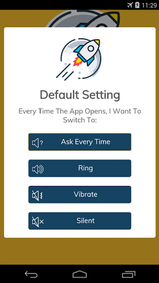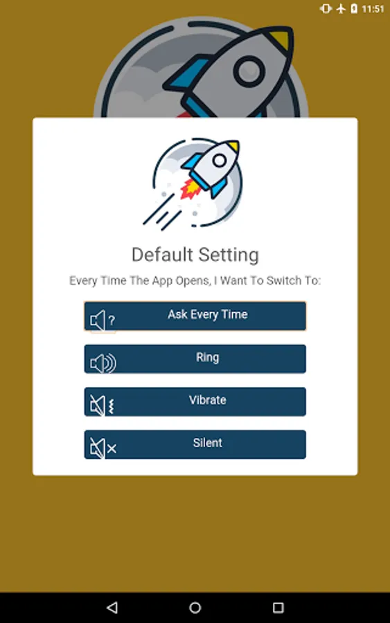 2. Launch app and choose the default action to be carried out when app is opened (switch to Ring, Vibrate, Silent mode or Ask Every Time)