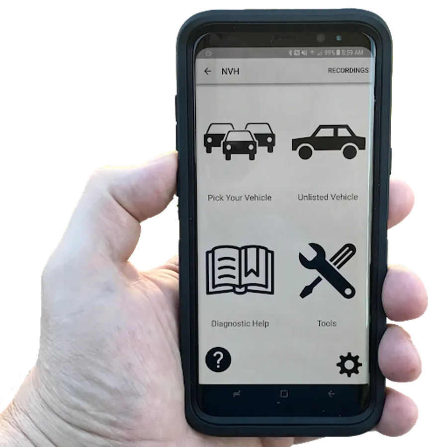 Take the NVH For Android app on a road test and know for certain whether your issue is:
