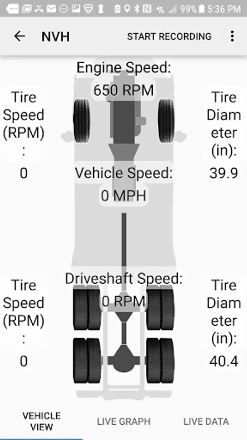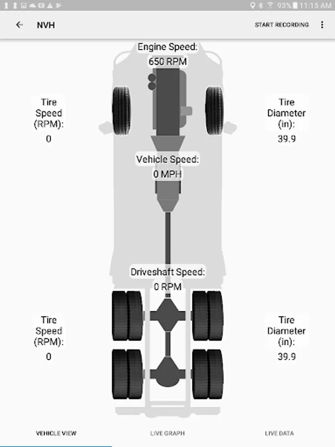 There are over 276 possible causes of vibration concerns on today’s vehicles. The NVH for Android app will automatically identify the group of parts and the specific type of vibration on your vehicle.