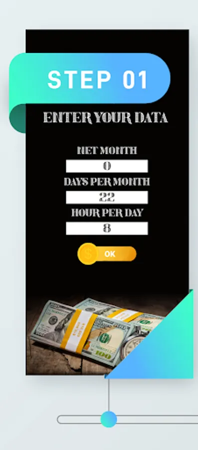 With this app you will be able to know how many months, days, hours and minutes you have had to work to earn an amount of money.