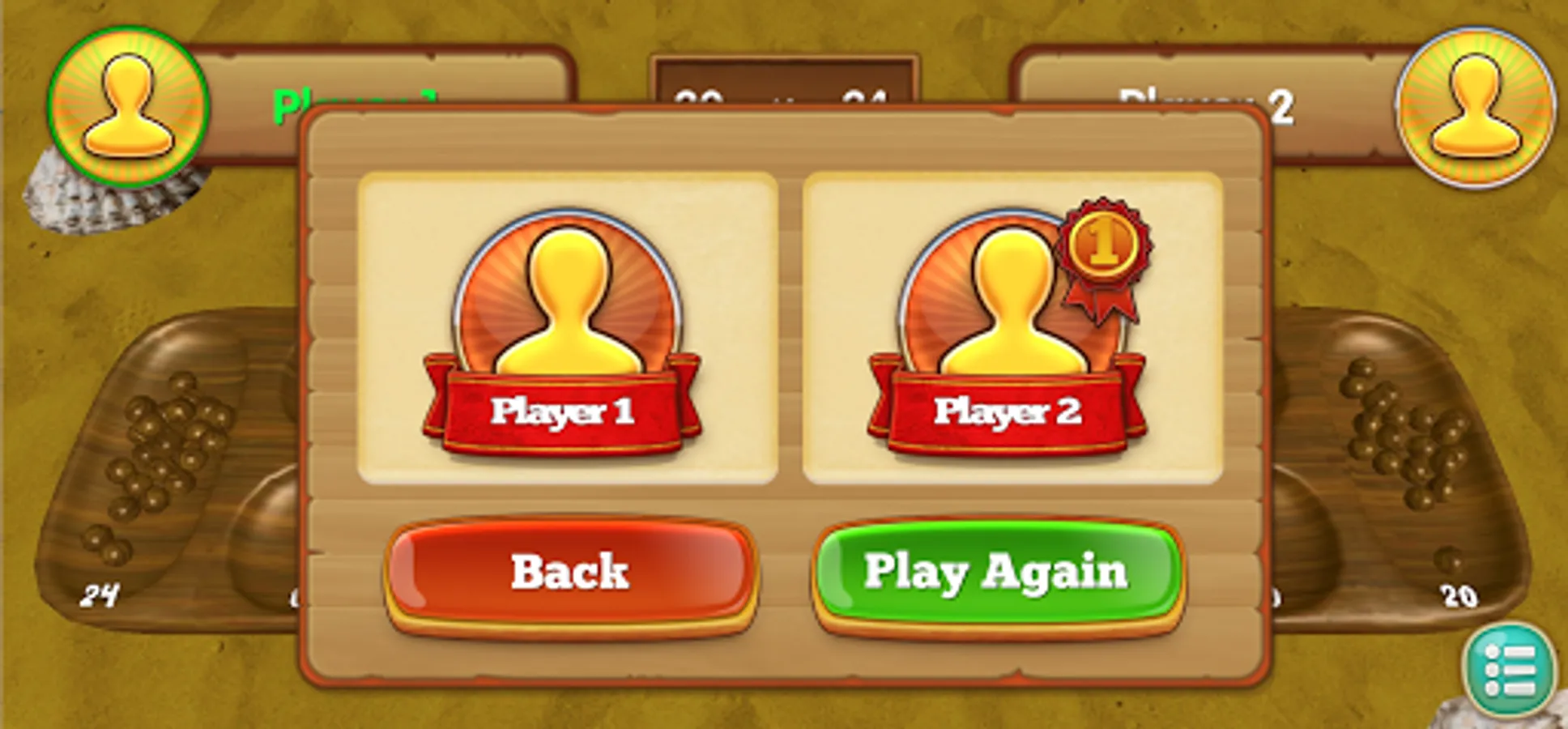 6) When a player has no more seeds in their houses, the game ends. The other player moves the seeds from their houses to the warehouse and the count occurs. The player with the most seeds in his store wins the game.