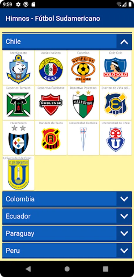 Chile: Antofagasta, Audax Italiano, Cobreloa, Colo-Colo, Deportes Temuco, Deportivo Ñublense, Deportivo Palestino, Everton de Viña del Mar, Huachipato, Rangers de Talca, Universidad Católica, Universidad de Chile, Universidad de Concepción