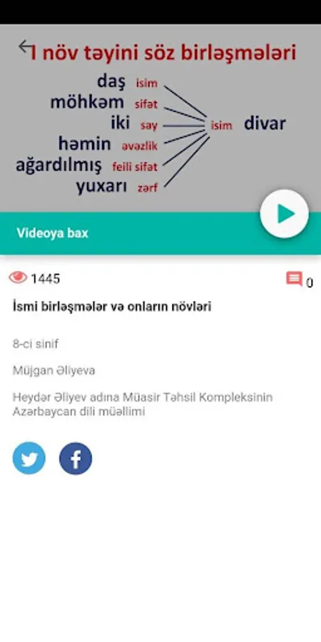 Portalda video dərslər fənn və siniflər üzrə yerləşdirilib. İstifadəçilər fənn seçdikdən sonra sinif, daha sonra isə fəsil və mövzu seçə bilirlər. Video dərsi izlədikdən sonra qiymətləndirmə sistemli materiallar ilə əldə edilmiş bilikləri qiymətləndirmək, videonu şərh etmək və sual ünvanlamaq mümkündür.